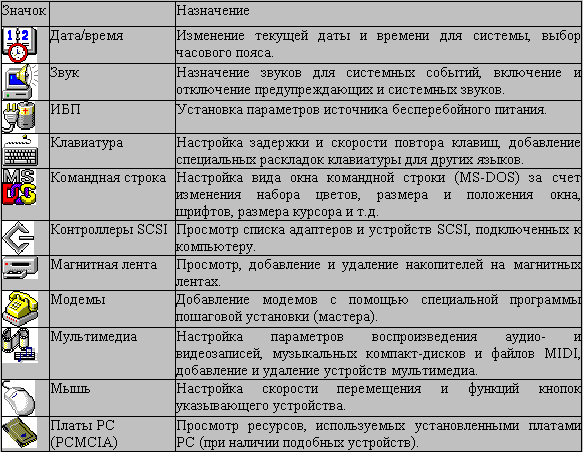 настройки операционной системы. Значки панели управления