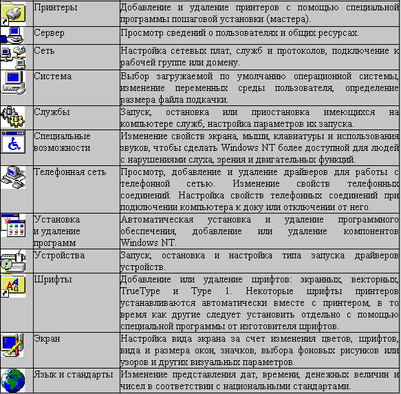 Панель управления Windows NT позволяет изменить многие