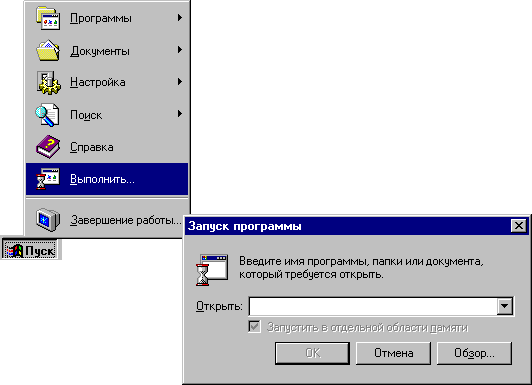 2. Введите имя объекта (файла, программы или папки), для