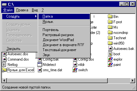 3. В появившемся контекстном меню выберите команду Создать