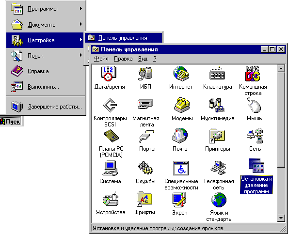 Нажмите кнопку “Пуск” и выберите в меню Настройка