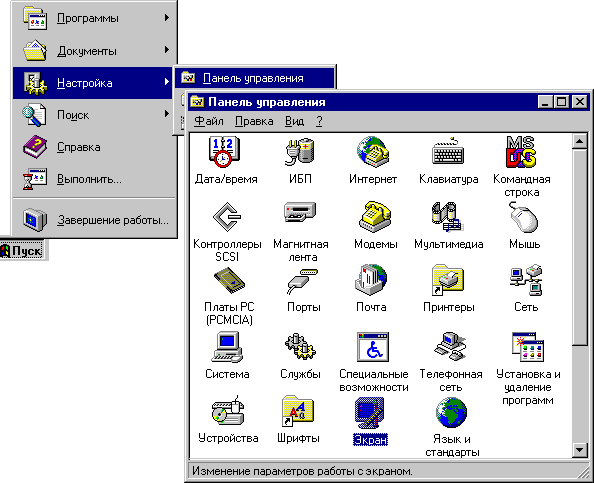 конфигурацию системы. Например, можно изменить вид экрана,