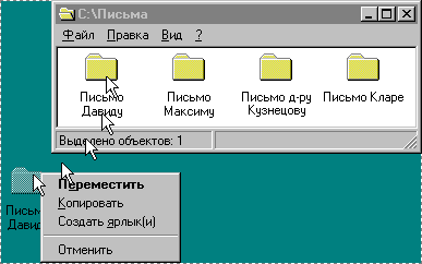 кнопке мыши. Во время перетаскивания на значок объекта