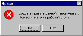 4. На экране появится сообщение с предложением создать ярлык