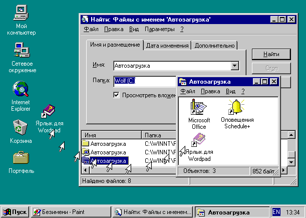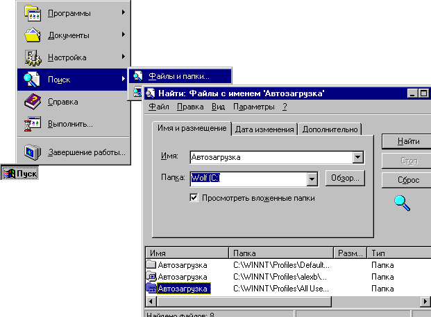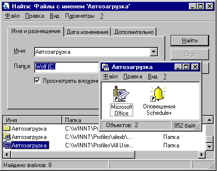 6. Выберите из списка папку “Автозагрузка”, содержащую в пути
