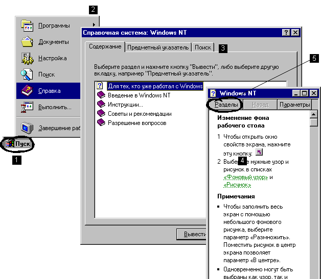 Windows NT содержит справочные сведения двух типов: