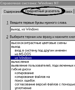 нужного раздела по теме, а вкладки “Предметный указатель” и