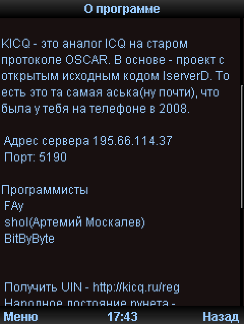 Скачать 0.1.2 - первая официально выпущенная версия, нужно также прописывать сервер KICQ.